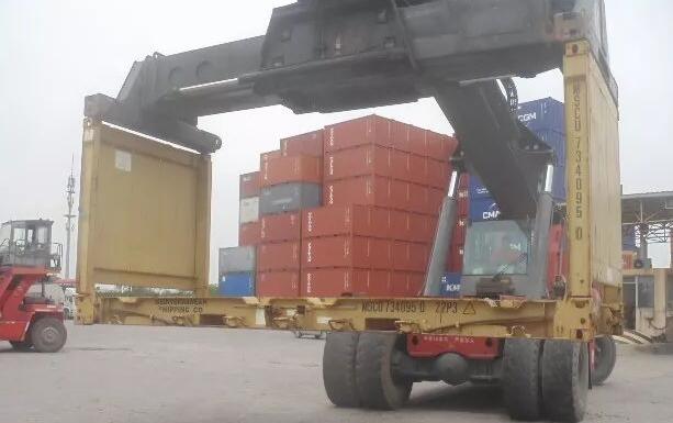 裝卸完成之后將四周圍的框架鎖住固定,就完成裝載了。這也是框架集裝箱最容易讓人識(shí)別出來的一個(gè)特性。