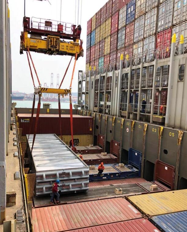 這樣大大便捷了框架箱在大型集裝箱船上的裝卸作業(yè)。