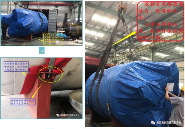 吊裝環(huán)節(jié),首先要考慮吊繩的承重能力;其次綁扎吊繩時(shí)要注意吊繩的位置,需保持貨物的平衡。