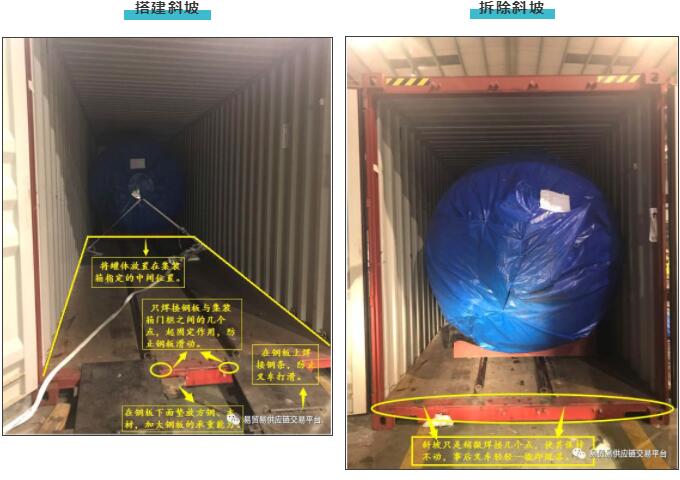 在集裝箱門上搭建斜坡,方便叉車進(jìn)入集裝箱內(nèi)部。